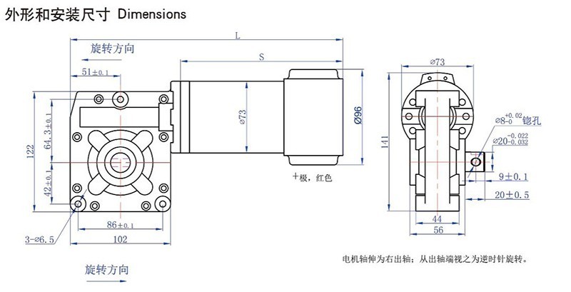 73ZYJ08直流永磁减速电动机系由直流永磁电动机和蜗轮蜗杆减速器组成。短时出力大,耐冲击负荷,适用于变负载、短时重复、连续工作。如地靶机等装置中作驱动或执行元件。